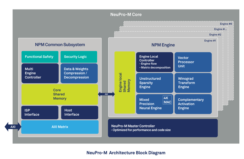 Data tunneling is also optimized through a decentralized control architecture. Through local data sequencers on each engine as well as on the common subsystem, NeuPro-M will optimize tunneling for bandwidth, performance and utilization by orchestrating the most optimized parallel processing schema per use case.
