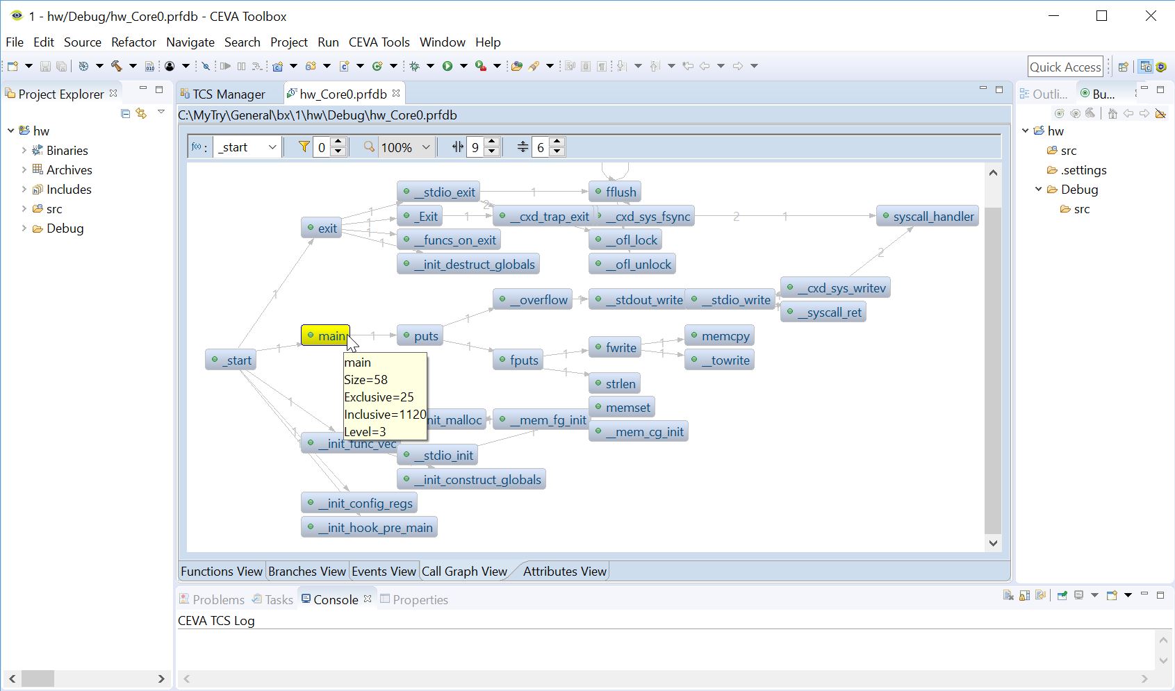 Figure 2: CEVA SDT ToolBox IDE Profiling results Call Graph View: visualization of the program flow.