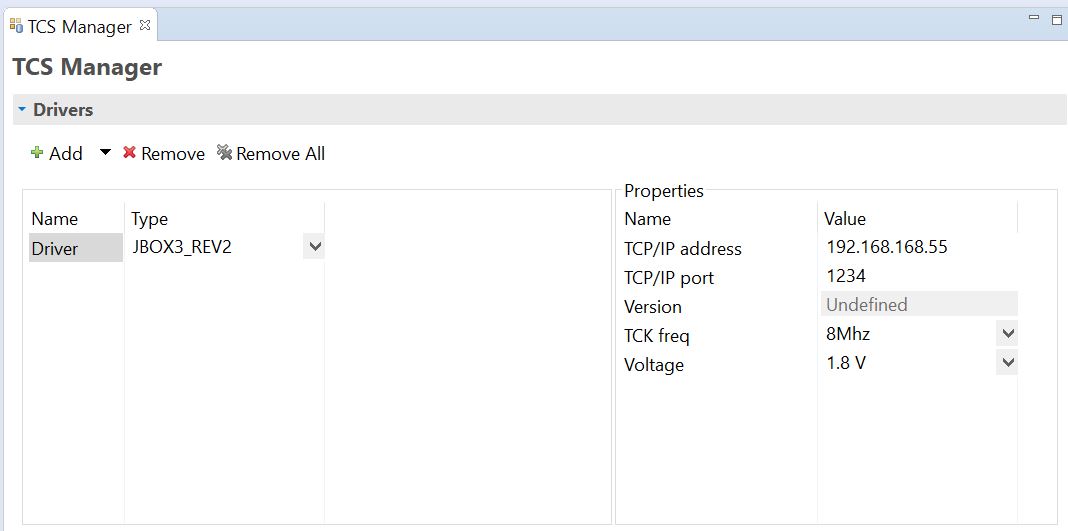 Setting a target connectivity server driver allows you to choose the component which will provide the actual hardware connection. The machine on which the Debugger executes connects to the driver via network connection, and the driver communicates with the selected hardware using the JTAG protocol. Figure 4 below shows the process of selecting a driver through the TCS interface.