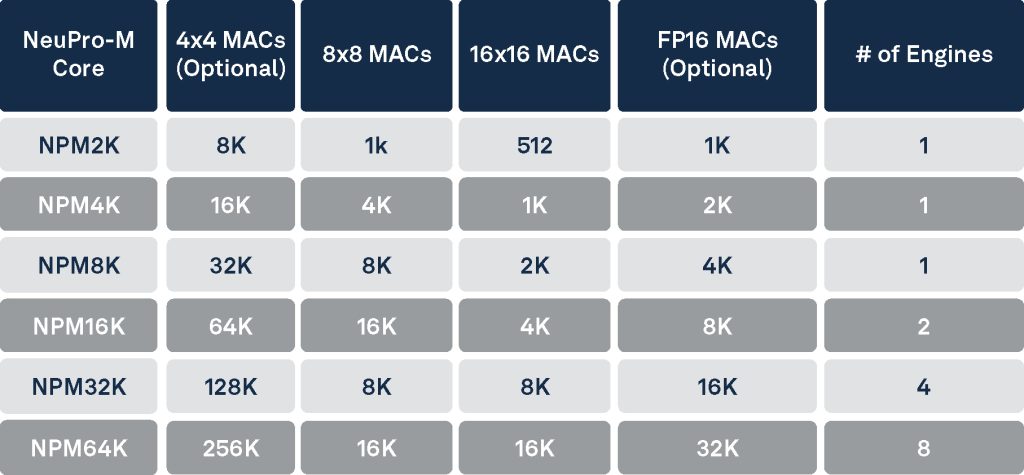 These NPU cores may be grouped into multi-core clusters to reach performance levels of thousands of TOPs